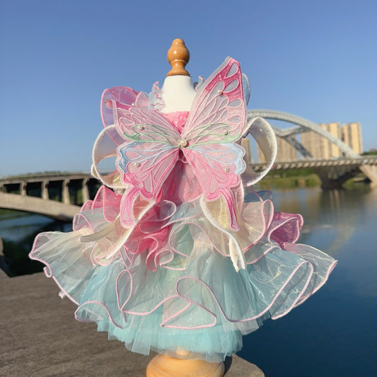 Butterfly Wing Princess Dress - Handmade Lace & Flower Design